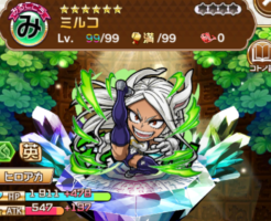 【コトダマン】ミルコの性能 キャラ紹介 ミルコ Lv99のパラメータ(超化) HP 1911(+478) ATK 547(+137) 属性 木 種族 英 グループ ヒロアカ 種別 なし わざ 兎 発動条件 3文字以上 敵単体に超絶強力な木属性攻撃 すごわざ 踵・・・ 続きを読む